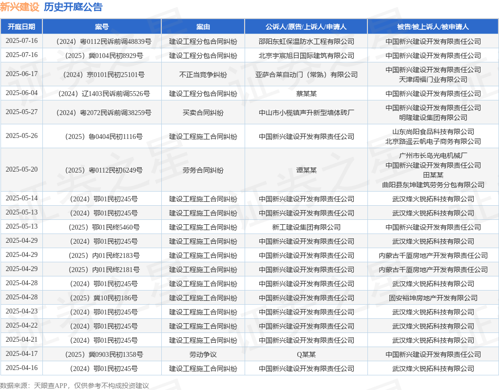 本站消息,根据天眼查APP显示,近日公布了一则中国新兴建设开发有限责任公司作为被告/被上诉人的开庭公告,详细内容如下:
