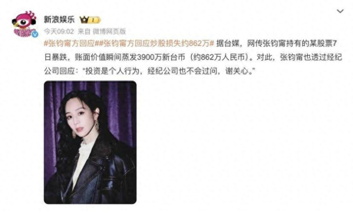 张钧甯最近因为投资事宜引起了人们的注意。她和她所在的经纪公司很快发表了声明,强调这些投资行为完全是张钧甯个人的决定,与公司运营毫无关联。实际上,这次的投资亏损对她而言并不严重。虽然损失了数百万的收入,但这并没有显著影响她的经济状况。此外,这一事件也展示了她在投资和理财领域的积极参与态度。